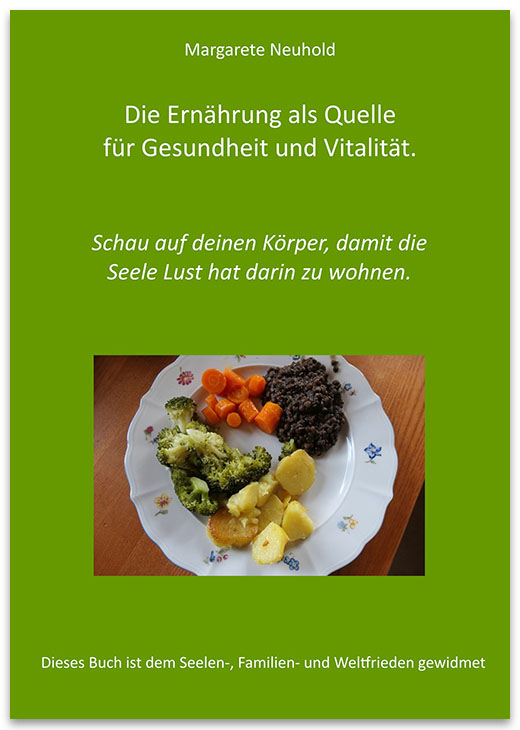 Das Buch mit dem Titel "Die Ernährung als Quelle für Gesundheit und Vitalität" wird in Hardcover und Softcover mit 119 Buchseiten angeboten. In Hardcover kann es um € 25,00 und in Softcover um € 10,00 in Bioläden gekauft und bei mir margarete_neuhold@aon.at mit einer beigefügten Rechnung bestellt werden.